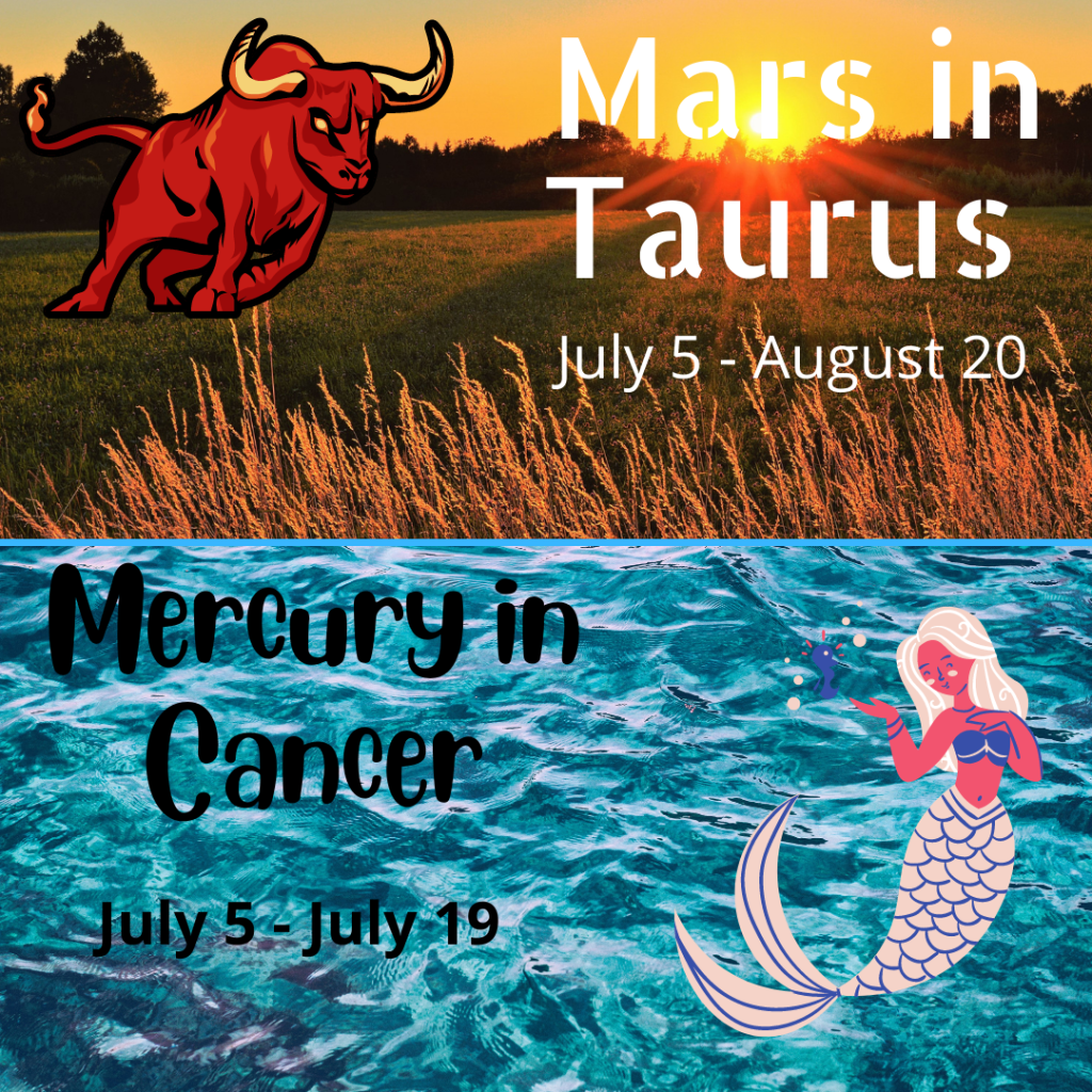 We will shift gears overnight, slowing down a bit as Mars shifts from fast paced Aries into steady Taurus and Mercury goes from quick witted Gemini into thoughtful Cancer. These planets will sextile each other so the energy may feel a bit combined at first. Mercury is moving very quickly now and will only be in Cancer until July 19th. Mars is slower by comparison and remains in Taurus until August 20th.